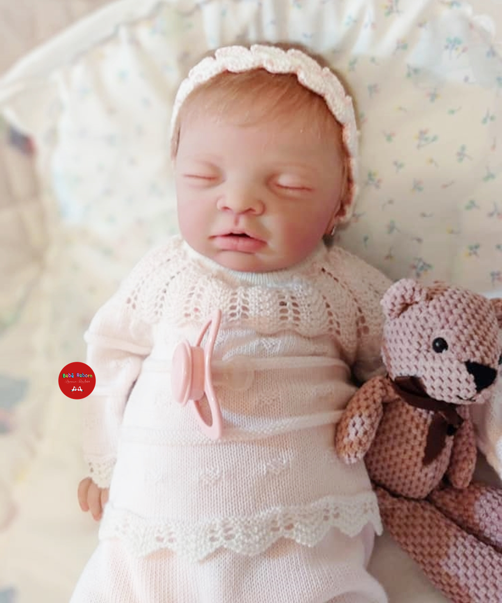 Bebê Reborn Menina Charlotte 46 Cm Olhos Fechados Em Silicone Sólido Fofa E Encantadora Com Chupeta